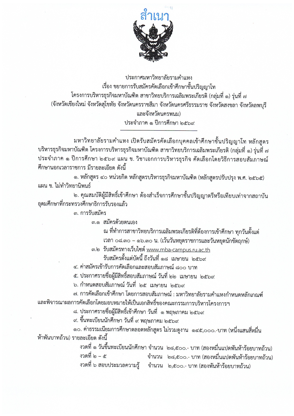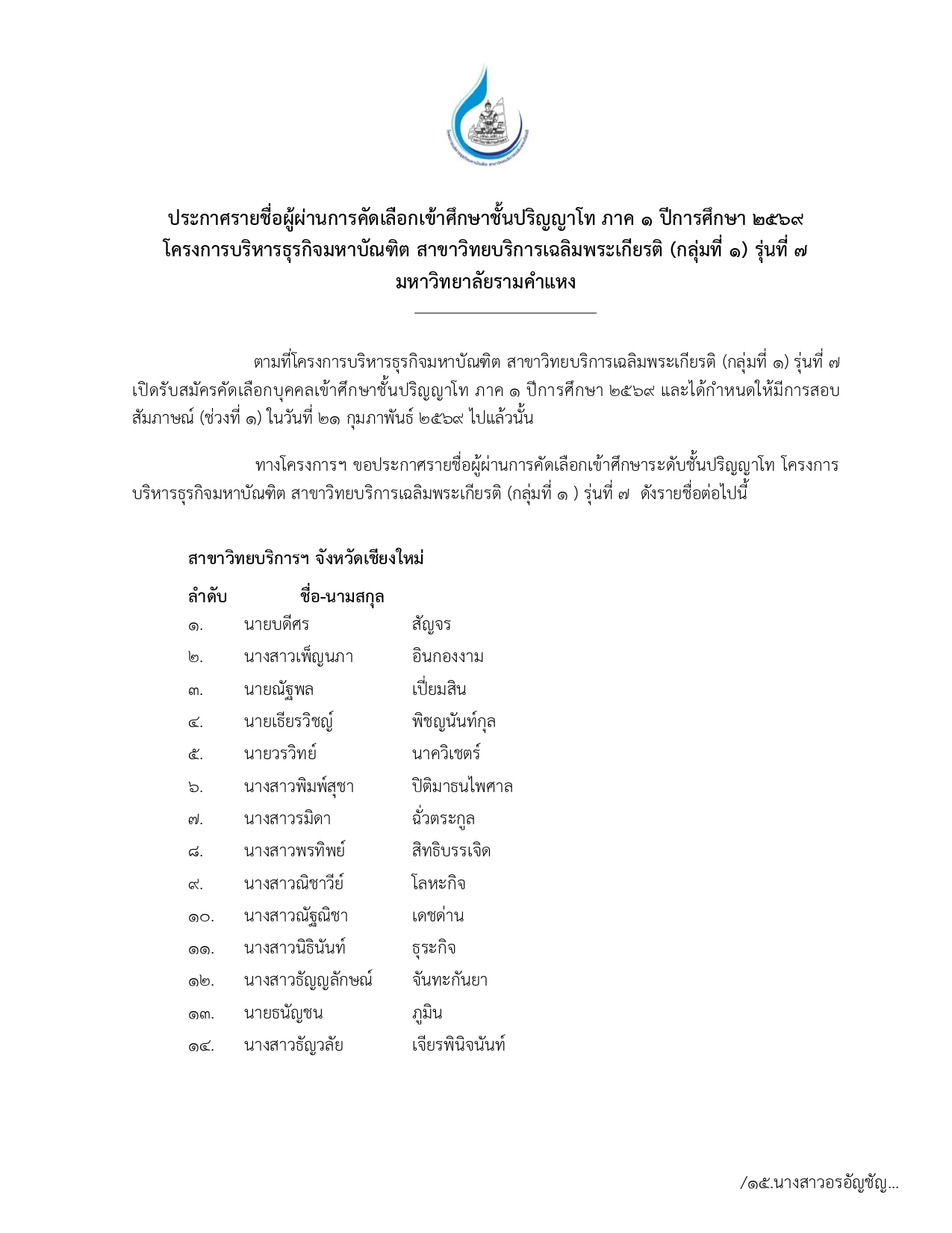 ประกาศรายชื่อผู้มีสิทธิ์เข้าศึกษา (กลุ่มที่ 1) รุ่นที่ 7 (ช่วงที่ 1)