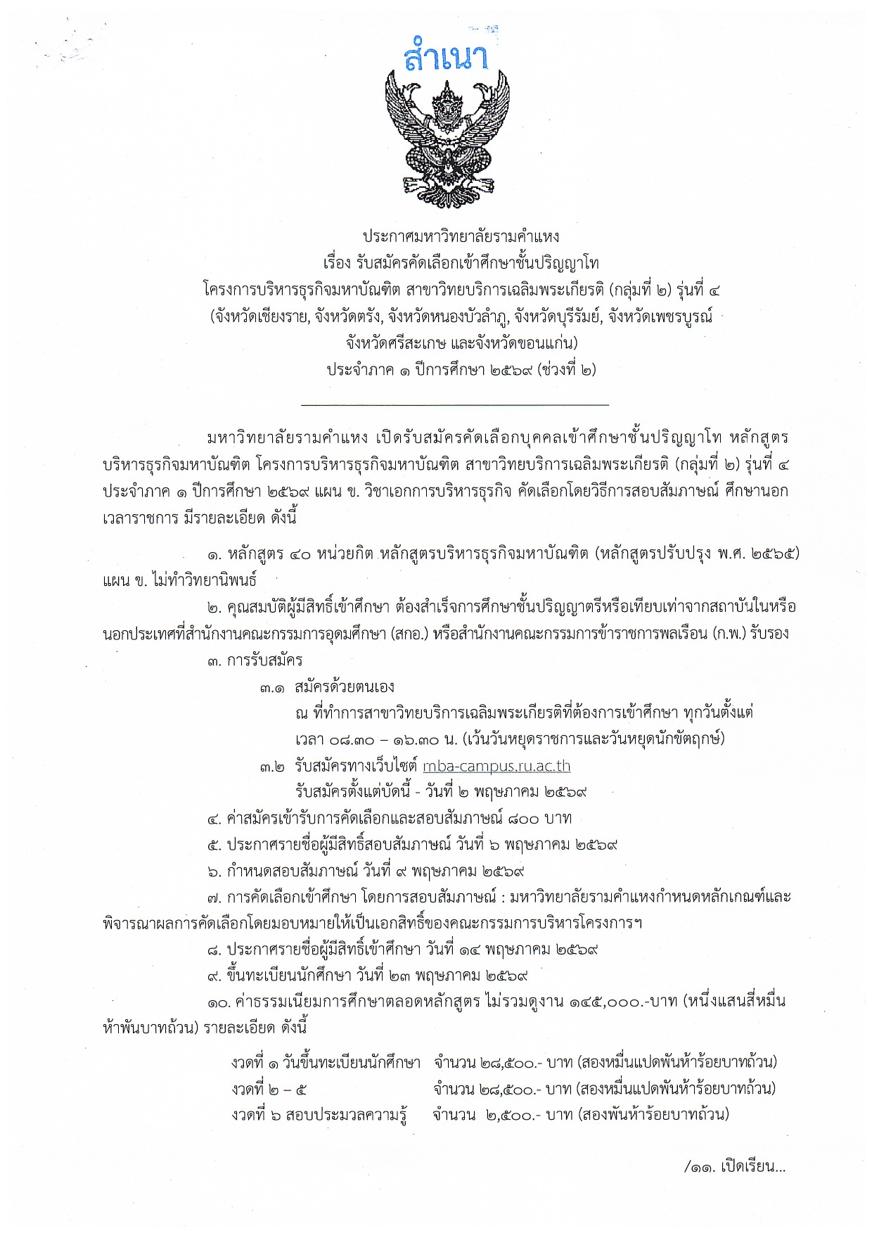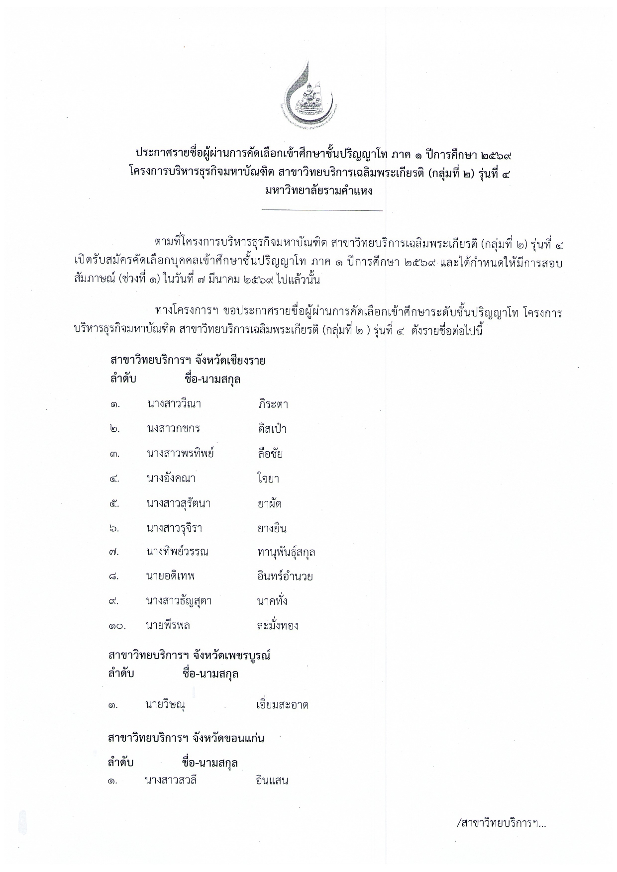 ประกาศรายชื่อผู้มีสิทธิ์เข้าศึกษา (กลุ่มที่ 2) รุ่นที่ 4 (ช่วงที่ 1)