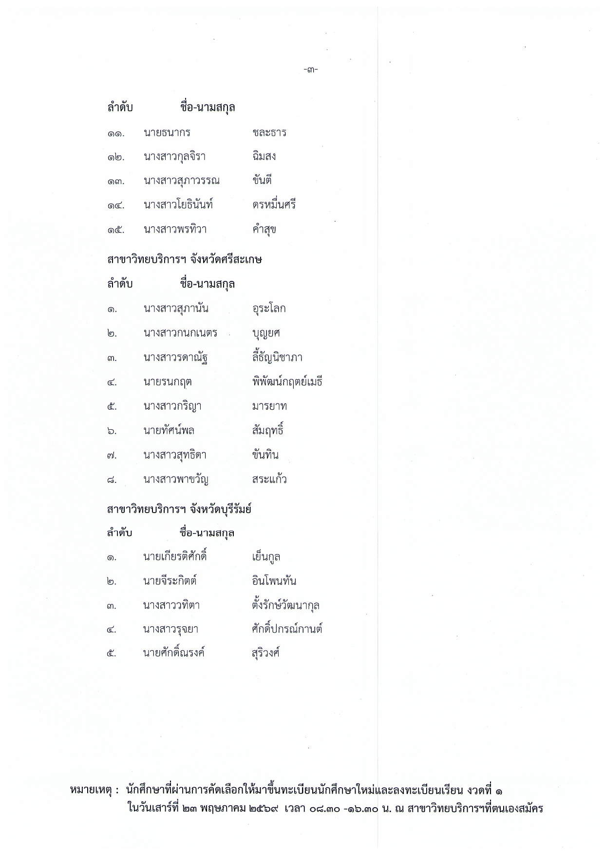 ประกาศรายชื่อผู้มีสิทธิ์เข้าศึกษา (กลุ่มที่ 3) รุ่นที่ 3 (ช่วงที่ 4)