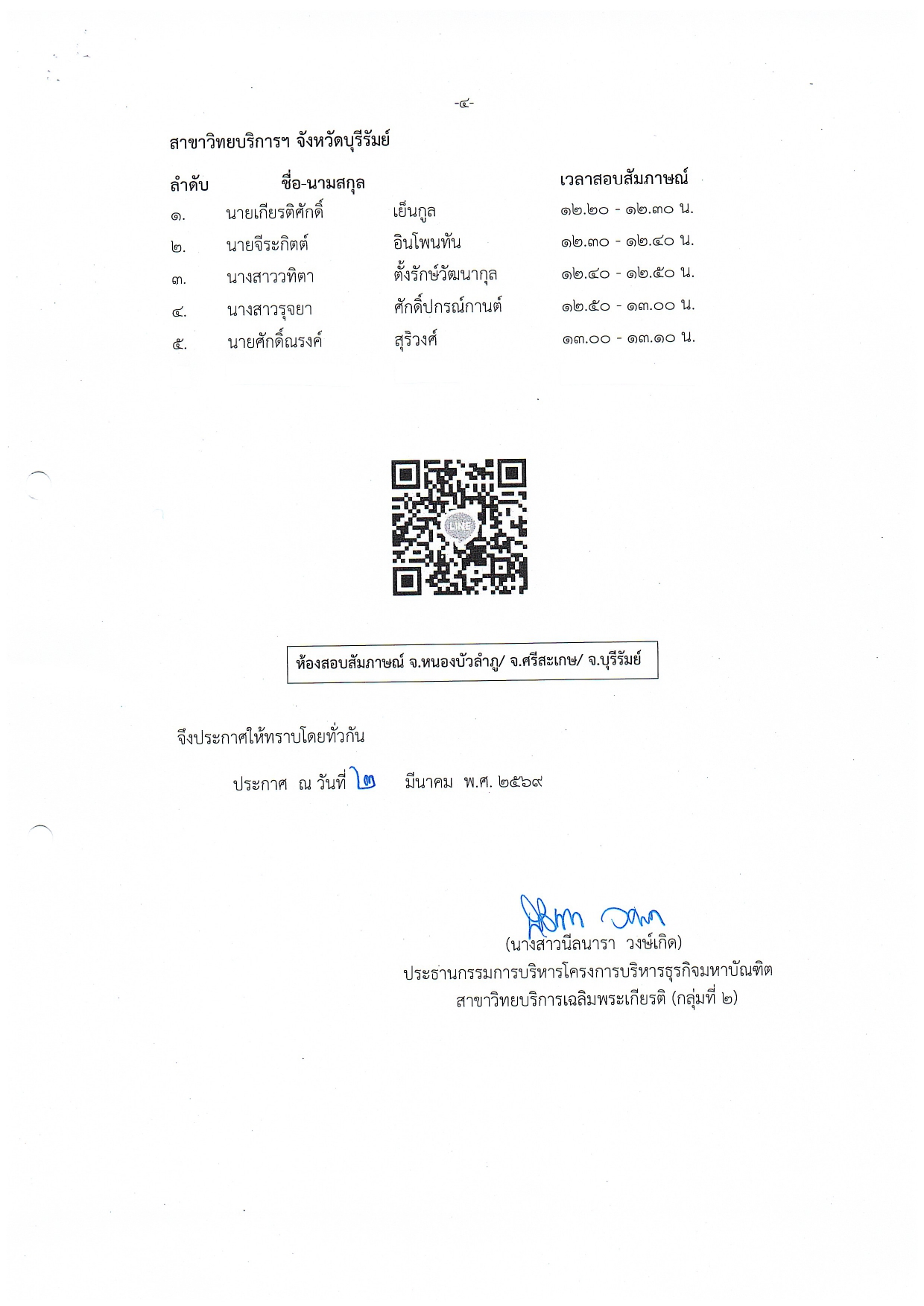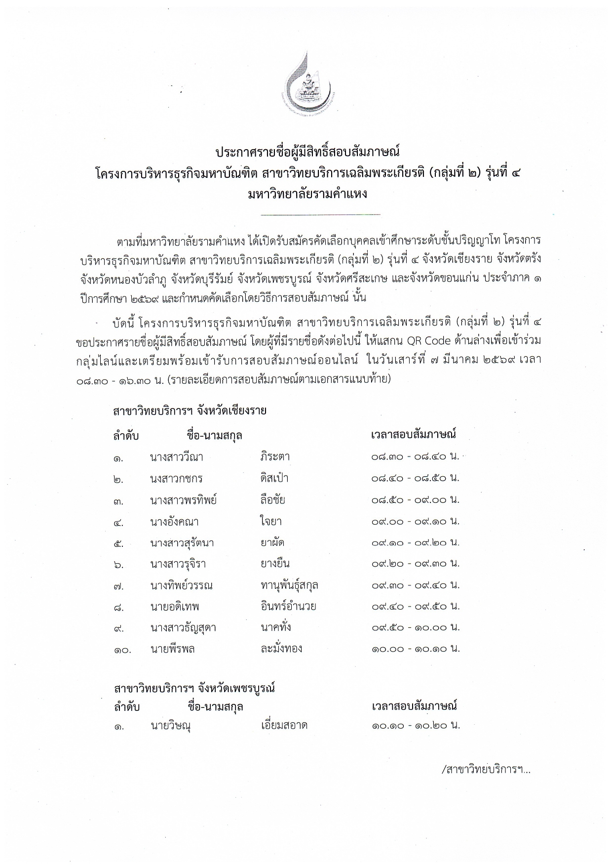 ประกาศรายชื่อผู้มีสิทธิ์สอบสัมภาษณ์ (กลุ่มที่ 2) รุ่นที่ 4 (ช่วงที่ 1)