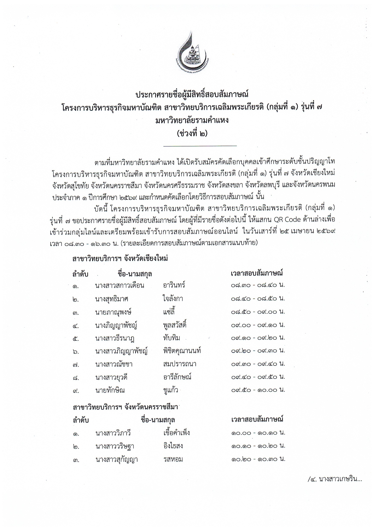 ผู้มีสิทธิ์สอบสัมภาษณ์
